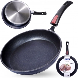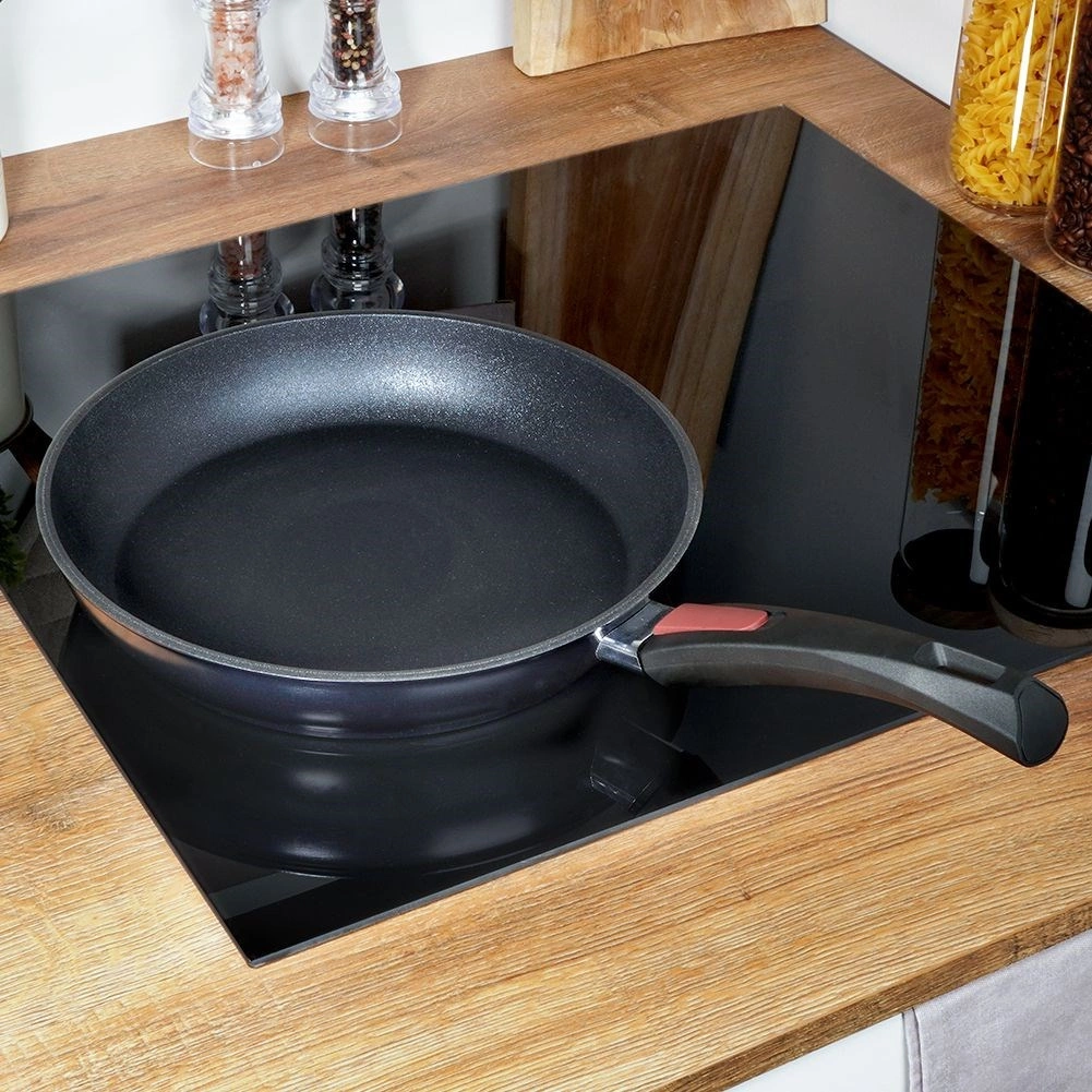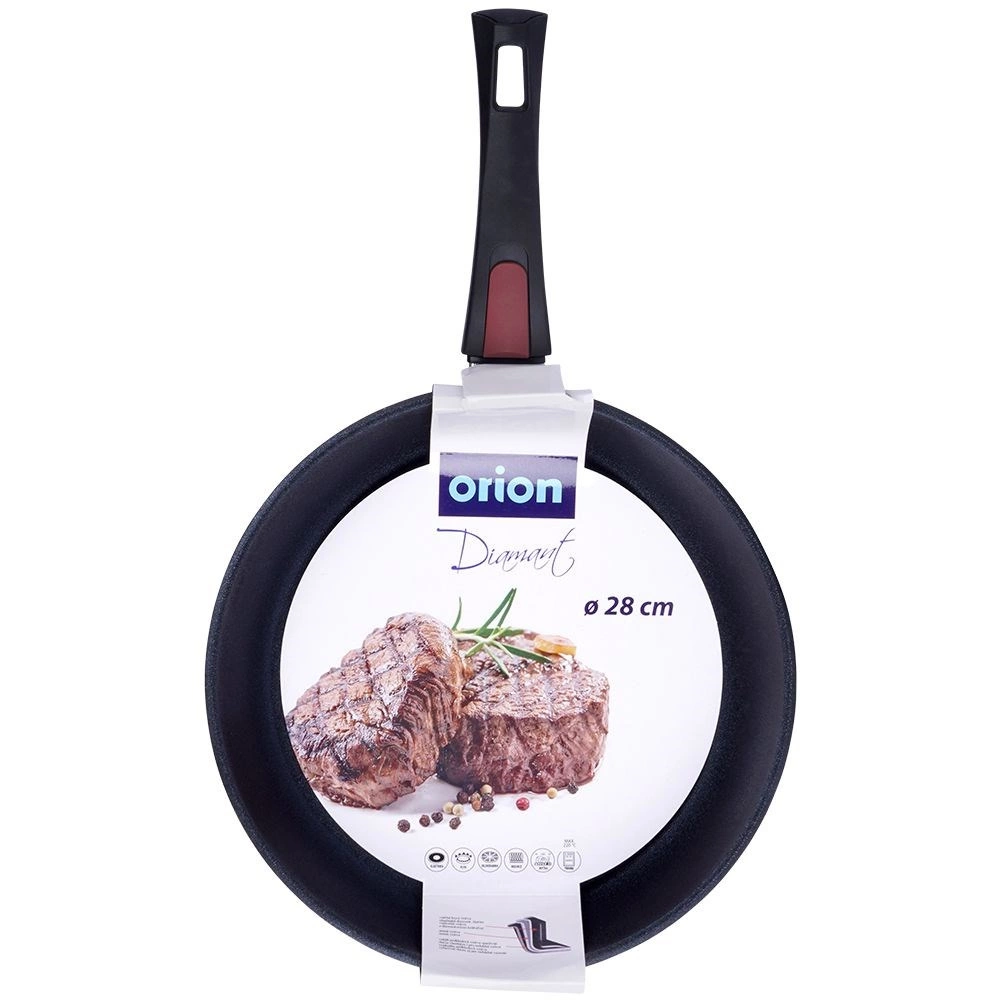 Descoperiți ajutorul zilnic din bucătărie: tigaie robustă cu diametrul de 28 cm, cu strat antiaderent pe bază ceramică întărit cu diamant. Suprafața cu particule de diamant conduce excelent căldura, nu interacționează cu alimentele și permite gătit fiabil, uniform și economic fără lipire.