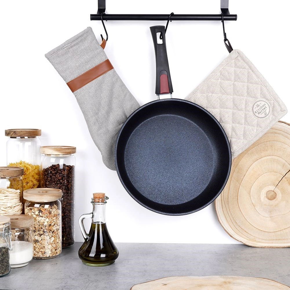 Prindere confortabilă, manevrare sigură și posibilitatea coacerii în cuptor până la 220 °C. Mânerul se îndepărtează ușor printr-un singur click.