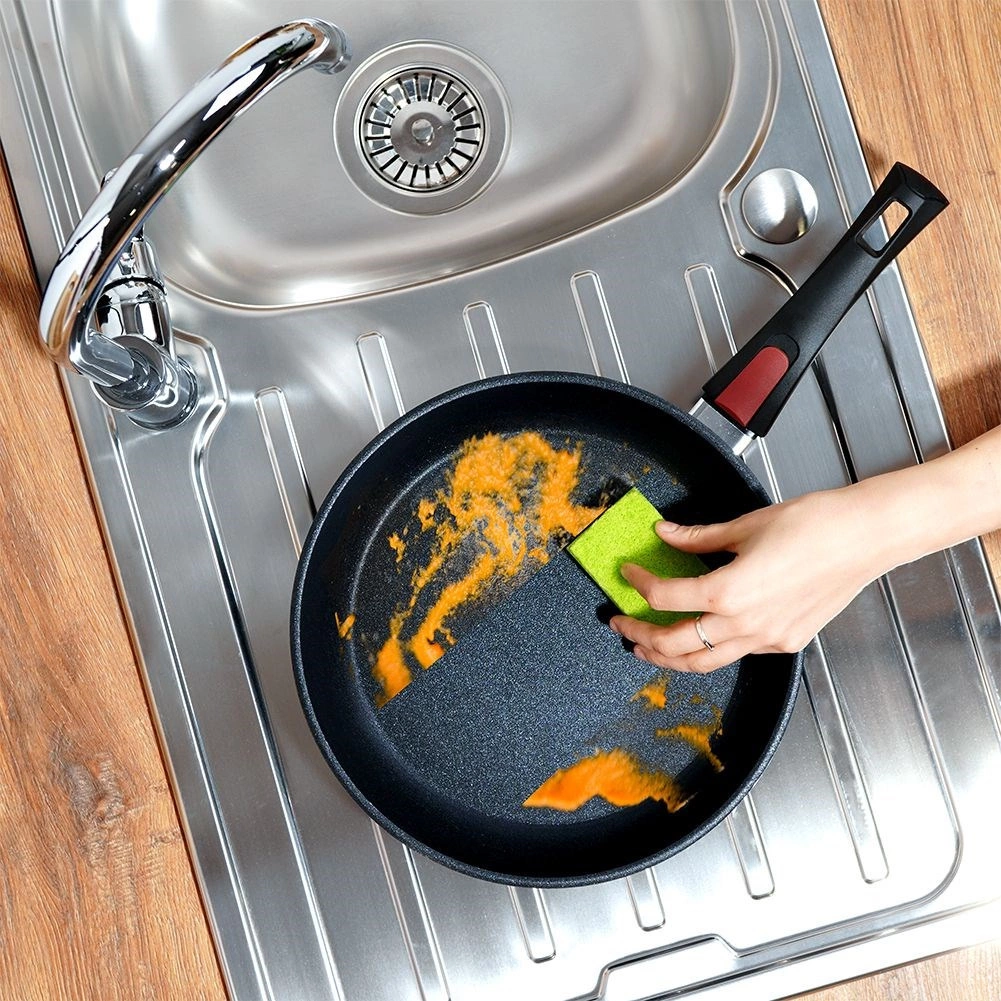 Datorită mânerului detașabil treceți ușor de pe plită în cuptor și economisiți spațiu la depozitare și în mașina de spălat vase. Tigaia este compatibilă cu plite pe gaz, electrice, vitroceramice, cu halogen și cu inducție, potrivindu-se oricărei gospodării.
