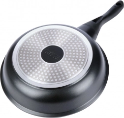 Fundul multistrat cu plăcuță pentru inducție transmite eficient căldura pe întreaga suprafață a tigăii pentru prăjire rapidă și uniformă.