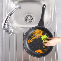 Construcția practică, cu mâner ergonomic care nu se încinge, asigură utilizare sigură și confortabilă. Tigaia este universală pentru toate tipurile de plite, inclusiv inducție, iar pentru întreținere facilă poate fi spălată în mașina de spălat vase.