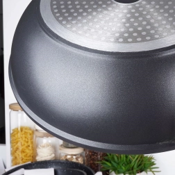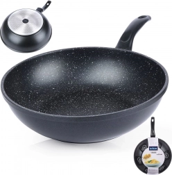 Mânerul ergonomic rămâne rece la atingere și asigură o manipulare sigură. Datorită compatibilității universale cu toate tipurile de plite, inclusiv inducție și posibilității de spălare în mașina de spălat vase, wok-ul este un ajutor practic pentru gătitul de zi cu zi. Aspectul atemporal cu textură de granit/„piatră” completează stilat bucătăria.