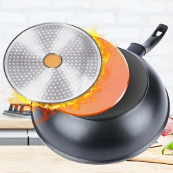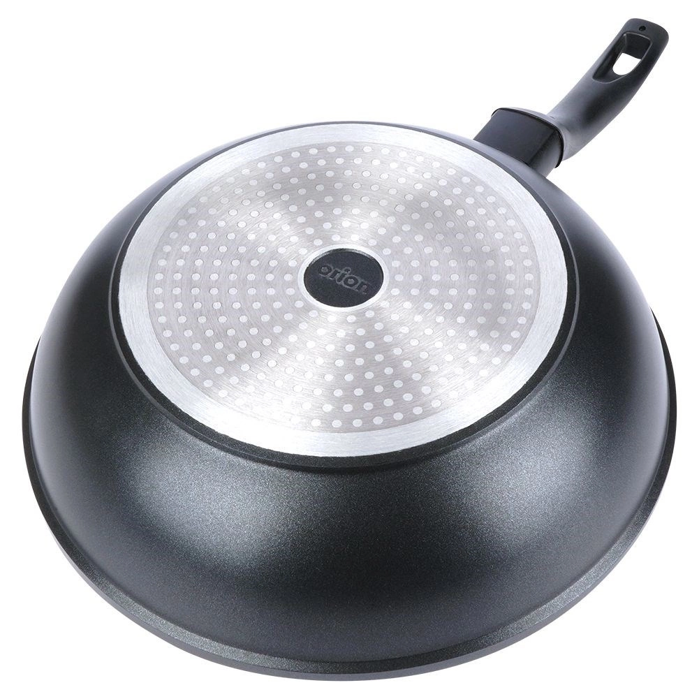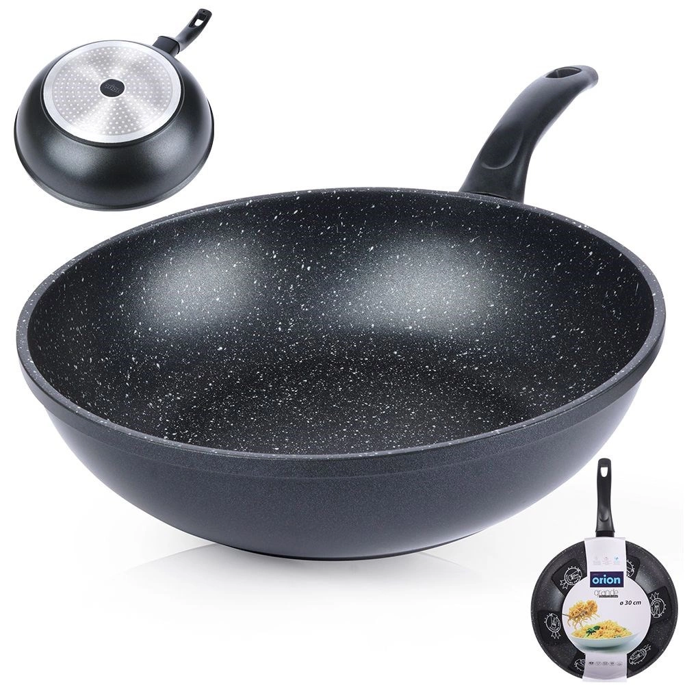 Wok-ul GRANDE 30 cm combină corpul masiv din aluminiu pentru distribuție rapidă și uniformă a căldurii cu un strat antiaderent din granit durabil, care ușurează gătitul și curățarea. Este ideal pentru sotare, prăjire și înăbușire de carne și legume și este excelent pentru preparate inspirate din bucătăria asiatică, inclusiv tăiței rapizi și stir-fry.