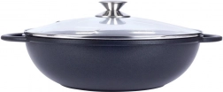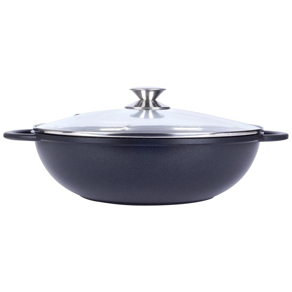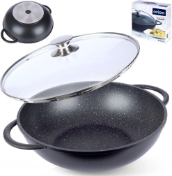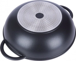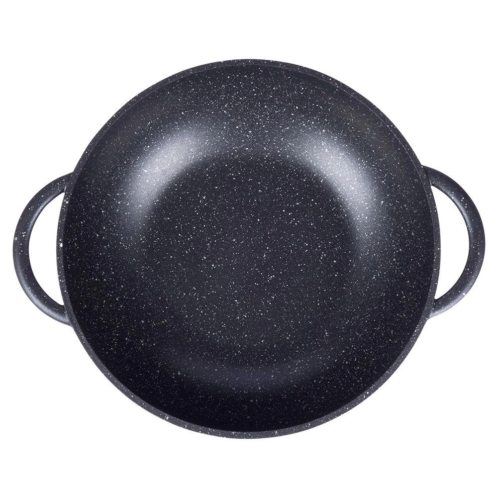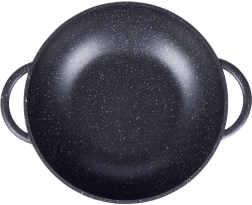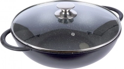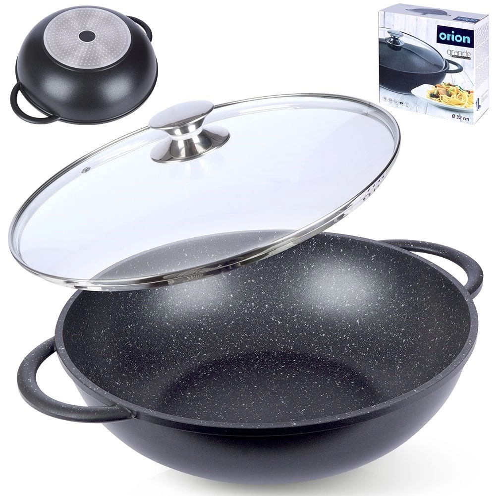 Descoperiți gătitul confortabil cu wokul din aluminiu rezistent, cu acoperire interioară din granit PFLUON, antiaderentă, rezistentă la zgârieturi și la temperaturi înalte. Datorită bazei late și pereților înalți, este ideal pentru stir‑fry, legume, carne și paste. Capacul din sticlă transparent, cu margine din inox și orificiu pentru evacuarea aburului, facilitează controlul gătitului.