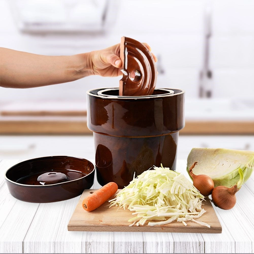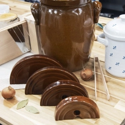 Suprafața glazurată este igienică și ușor de curățat, iar ceramica rezistă excelent la încărcare, servind mulți ani. Ideal pentru producția casnică de varză murată, castraveți murați și alte delicatese din legume.