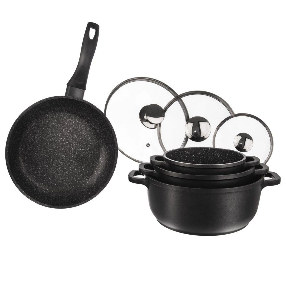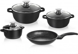 Fundul gros asigură încălzire rapidă și uniformă, economisind timp și energie. Vasele sunt potrivite pentru plite pe gaz, electrice, vitroceramice, cu halogen și pe inducție și pot fi folosite și în cuptor (capace rezistente până la 200 °C). Întreținerea este ușoară – suprafața se curăță simplu, iar setul este compatibil cu mașina de spălat vase.