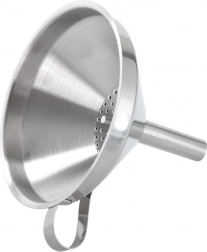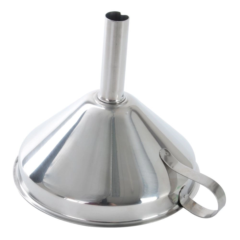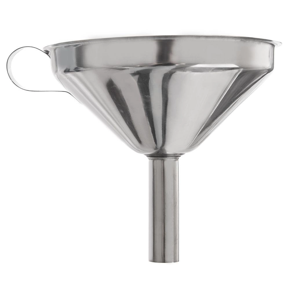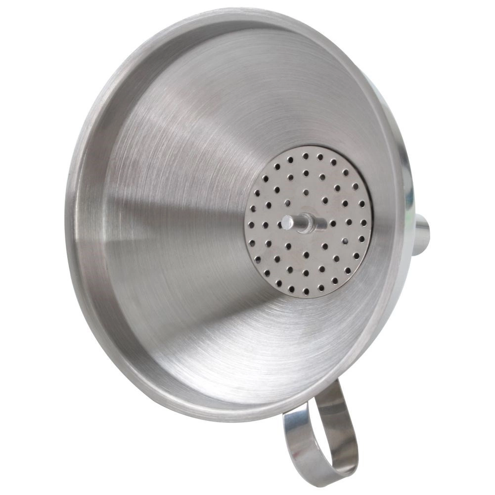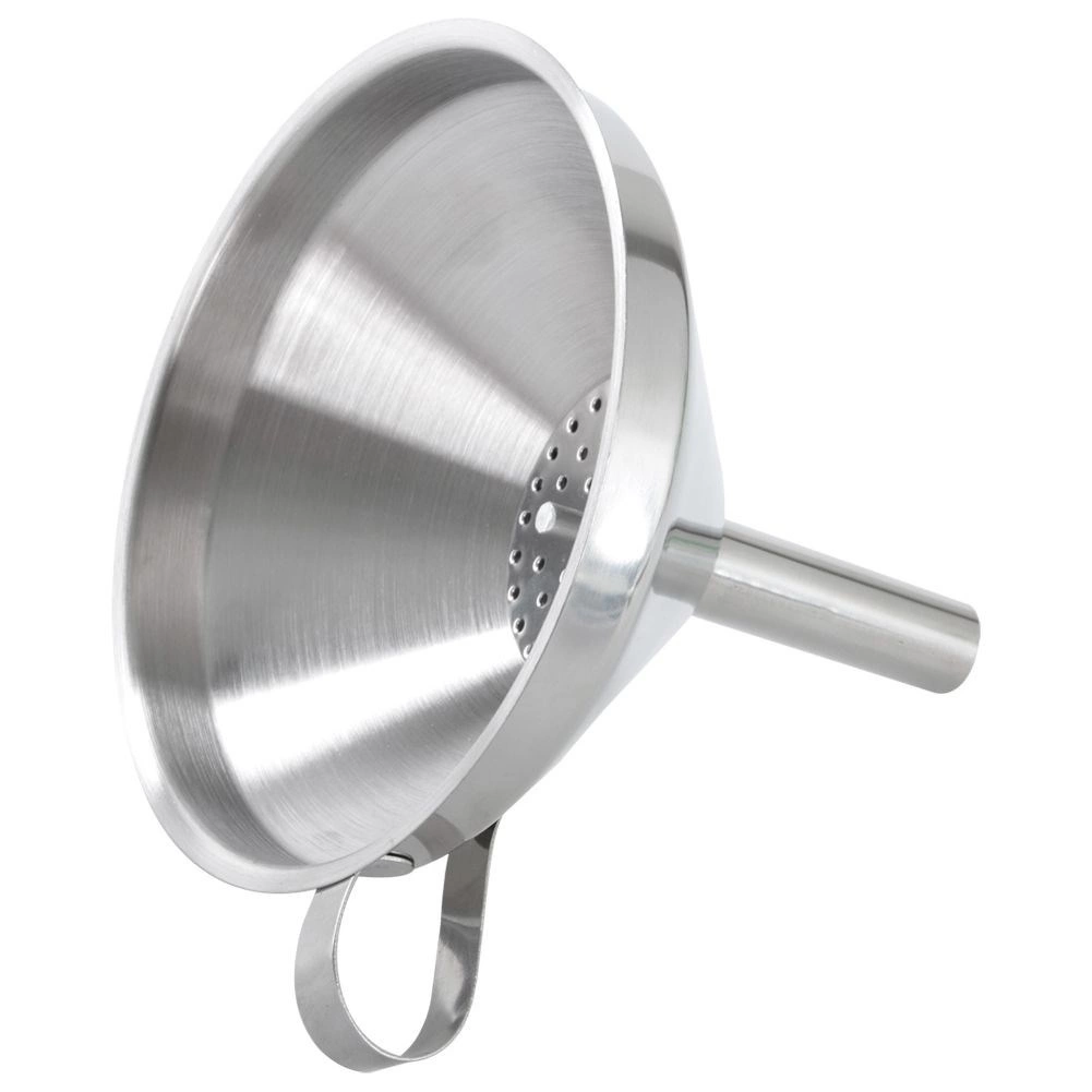 Ușurați umplerea sticlelor și a borcanelor cu o pâlnie de bucătărie rezistentă din oțel inoxidabil. Sita detașabilă reține în mod fiabil bucățile de fructe sau sedimentele fine, astfel încât turnarea este curată și precisă. Mânerul ergonomic asigură o prindere stabilă și posibilitatea de a o agăța pe bara de bucătărie.
