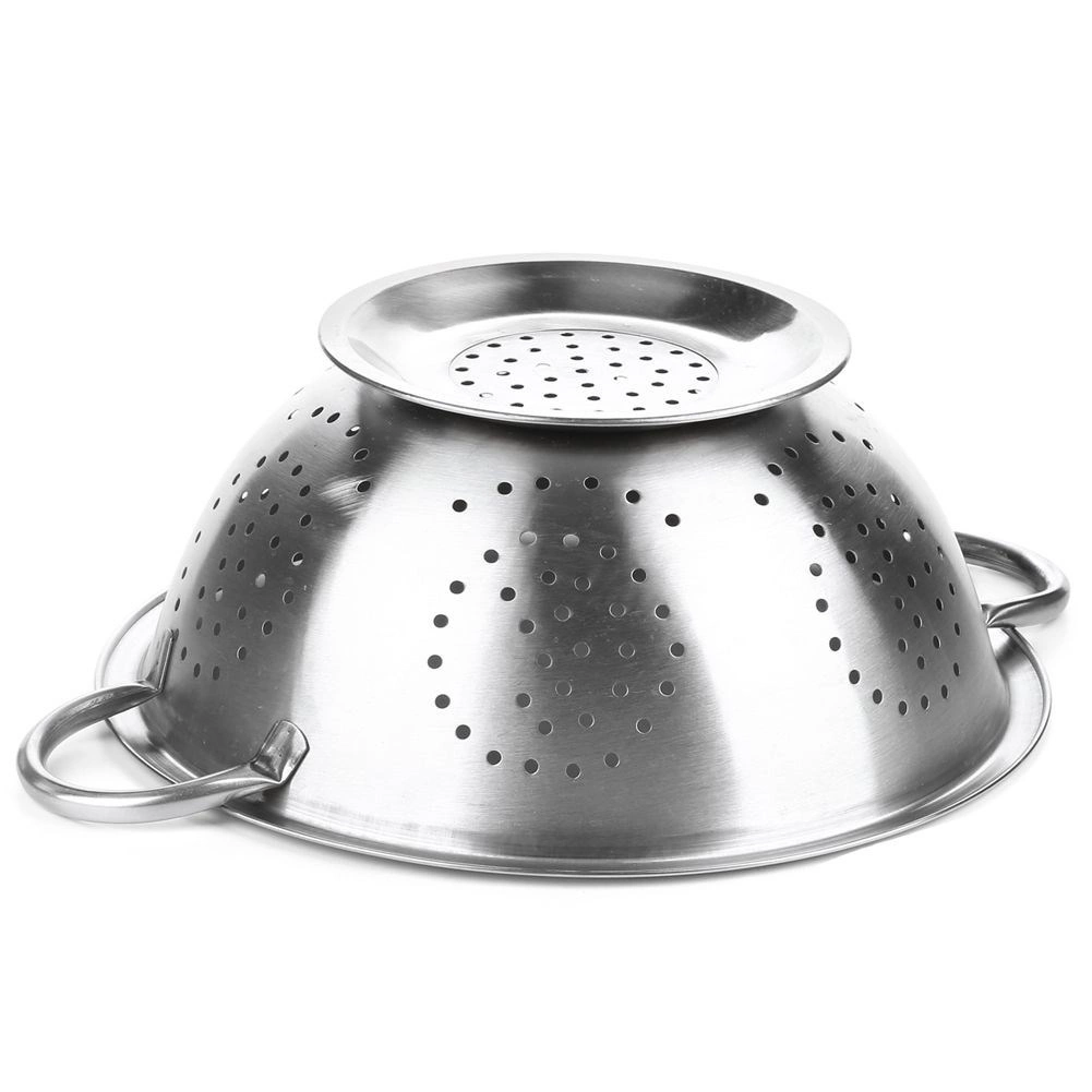 Această strecurătoare rezistentă din oțel inoxidabil îmbină forma practică de castron adânc cu un picioruș înălțat pentru stabilitate maximă în chiuvetă. Datorită perforațiilor dese, evacuează apa rapid și eficient și este ideală pentru clătirea fructelor și legumelor, precum și pentru scurgerea pastelor, găluștelor sau orezului.