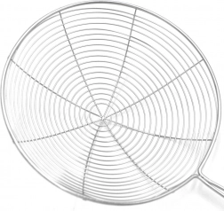 Capul deschis din sârmă permite scurgerea imediată a apei și uleiului, astfel încât preparatele rămân crocante și neîmbibate.