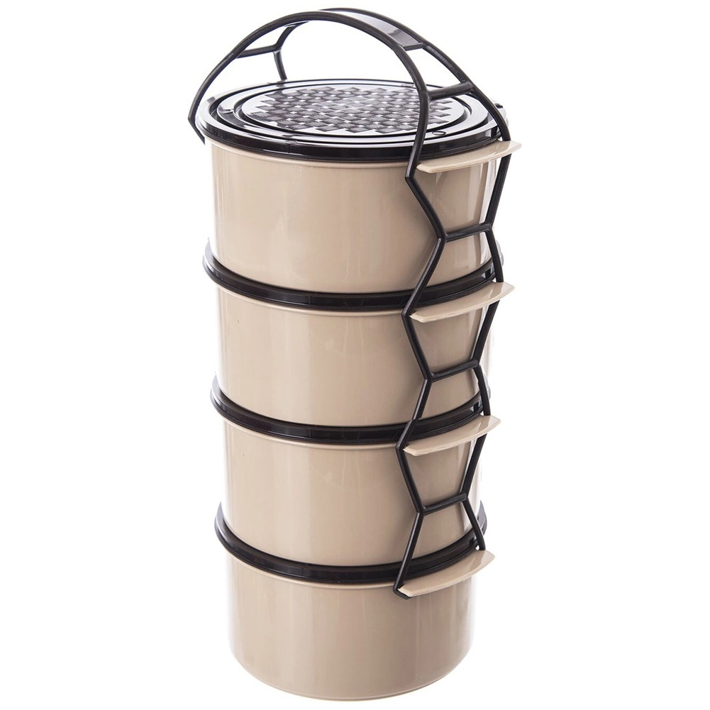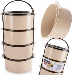 Bucurați-vă de transportul comod al prânzului sau cinei datorită meniurii cu patru recipiente separate de 1,5 l. Fiecare recipient are propriul capac, iar totul este ținut la un loc de cadrul robust cu mâner, astfel puteți transporta în siguranță diferite feluri separat. Ideală pentru călătorii, excursii, camping și pentru a duce mâncarea zilnic la serviciu.