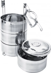 Separați felurile fără amestecarea gusturilor. Fiecare caserolă are capac, iar totul este fixat de un cadru solid cu cleme și mâner superior.
