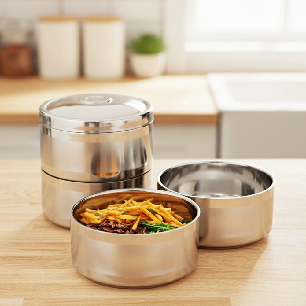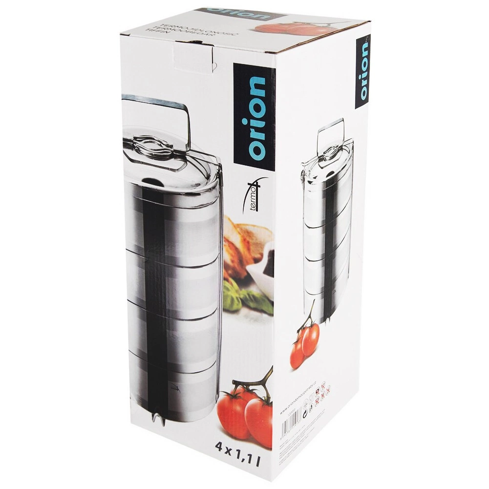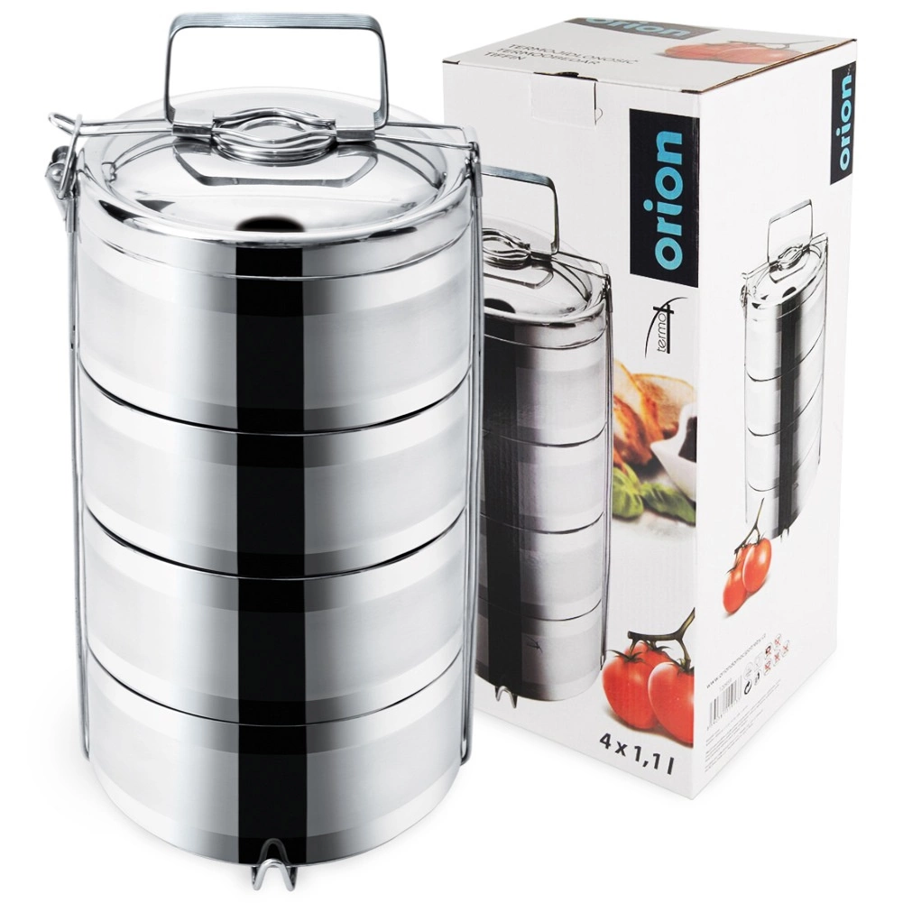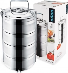 Termosul multietajat pentru mâncare, din oțel inoxidabil de calitate, este ideal pentru prânzul zilnic și excursiile de weekend. Cele patru recipiente separate permit păstrarea supei, felului principal și garniturilor fără a le amesteca, în timp ce izolația în vid menține mai mult timp temperatura dorită. Cadrul stabil cu cleme de blocare și mâner superior facilitează transportul sigur.