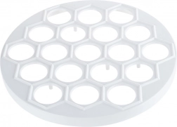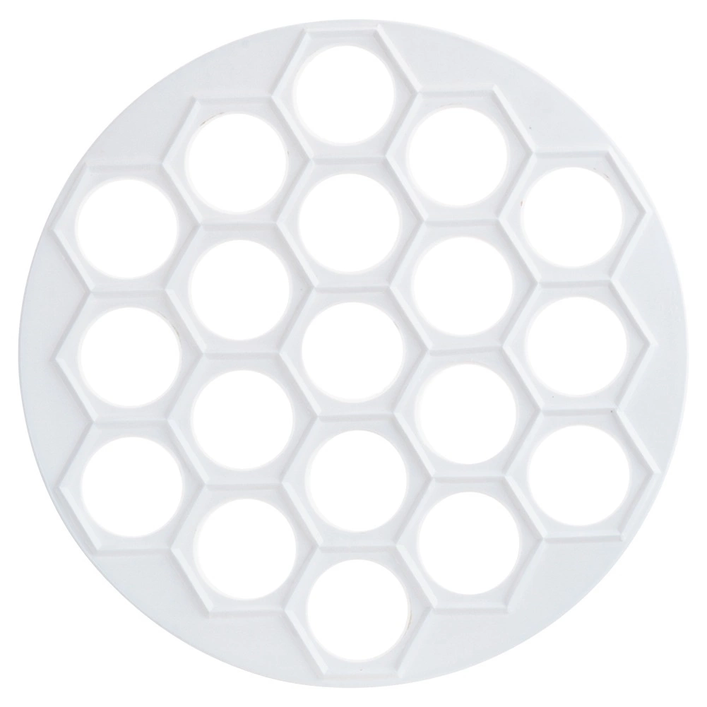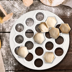 Forma accelerează decuparea și modelarea, menține o dimensiune uniformă și este potrivită pentru umpluturi dulci sau sărate. O puteți folosi nu doar pentru pelmeni, ravioli sau mini piroști, ci și pentru biscuiți și prăjituri mici cu formă rotundă. Materialul este sigur pentru contactul cu alimentele și corespunde standardelor europene.