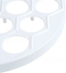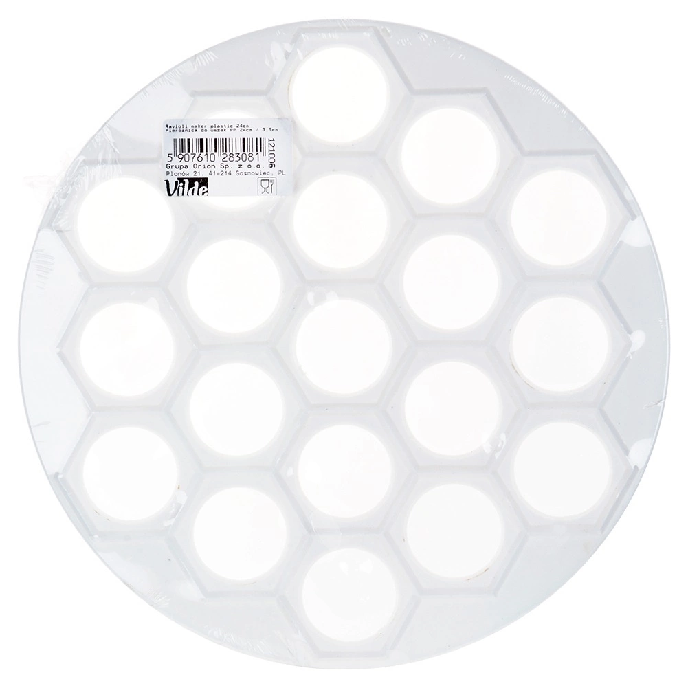 Descoperiți un instrument fiabil pentru producția casnică și profesională de pelmeni, ravioli și mini piroști. Forma circulară cu diametrul de 24 cm și înălțimea de 2 cm permite pregătirea a până la 37 de bucăți de aproximativ 3,5 × 3,5 cm dintr-o singură operațiune. Datorită construcției robuste și ușoare, se utilizează și se curăță confortabil și ocupă foarte puțin spațiu.