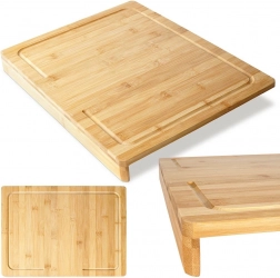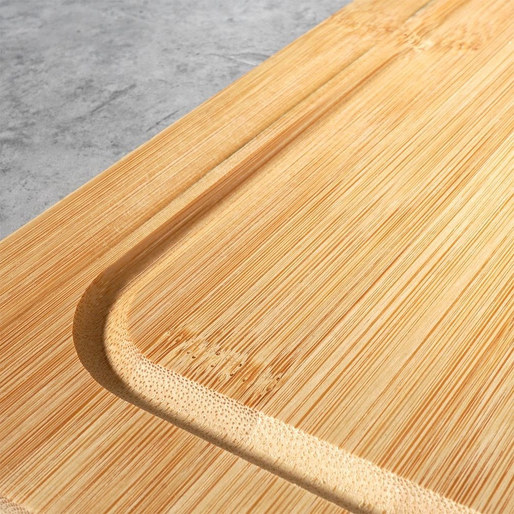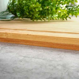 Tocător practic din bambus, cu margine de protecție, dimensiuni 45 × 35 cm și grosime de 1,3 cm, oferă stabilitate, igienă și o suprafață de lucru generoasă pentru gătitul zilnic. Datorită marginii de protecție se fixează ferm pe muchia blatului, iar canalul pentru sucuri și lemnul de bambus durabil mențin bucătăria curată și lucrul confortabil.
