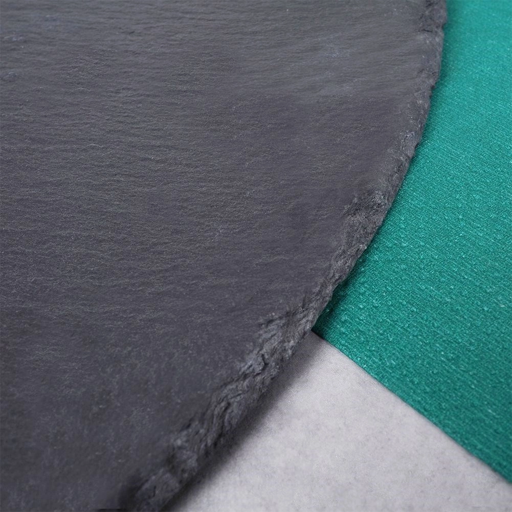 Suprafața închisă la culoare din ardezie, cu margini natural neregulate, oferă servirii un stil unic și o prezentare premium a preparatelor.