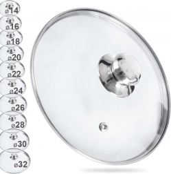 Acest capac din sticlă de calitate este un accesoriu excelent pentru oale, tigăi și cratițe fără capac. Sticla termorezistentă cu margine din inox asigură o durată lungă de viață, iar transparența permite controlul comod al preparatelor. Datorită formei ușor bombate, favorizează circulația aerului fierbinte și gătirea uniformă.