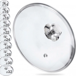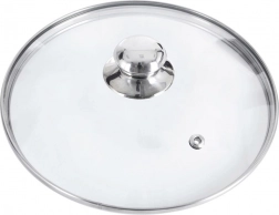 Capacul din sticlă cu diametrul de 30 cm este un accesoriu ideal pentru orice bucătărie. Sticla transparentă, rezistentă la căldură, permite controlul gătirii fără pierderi inutile de căldură și abur, în timp ce orificiul de abur elimină excesul de umiditate. Marginea și butonul din inox asigură durabilitate și o viață lungă a produsului.