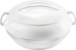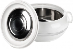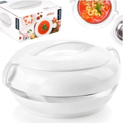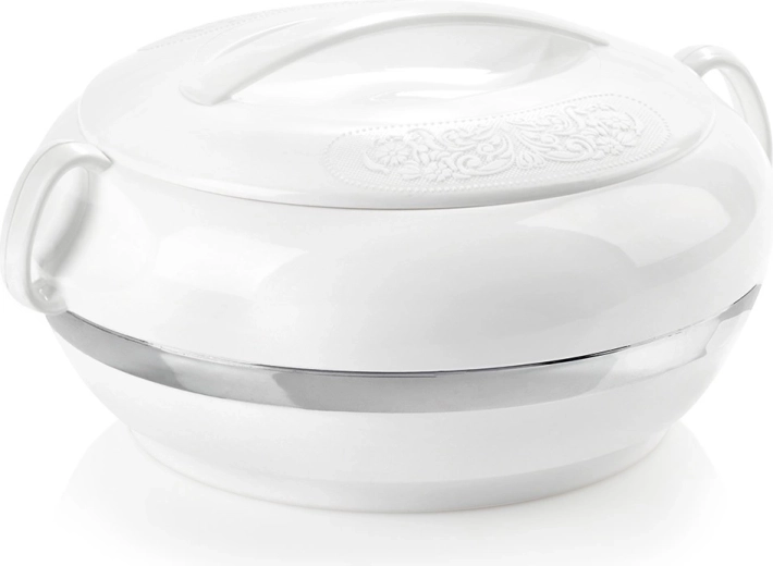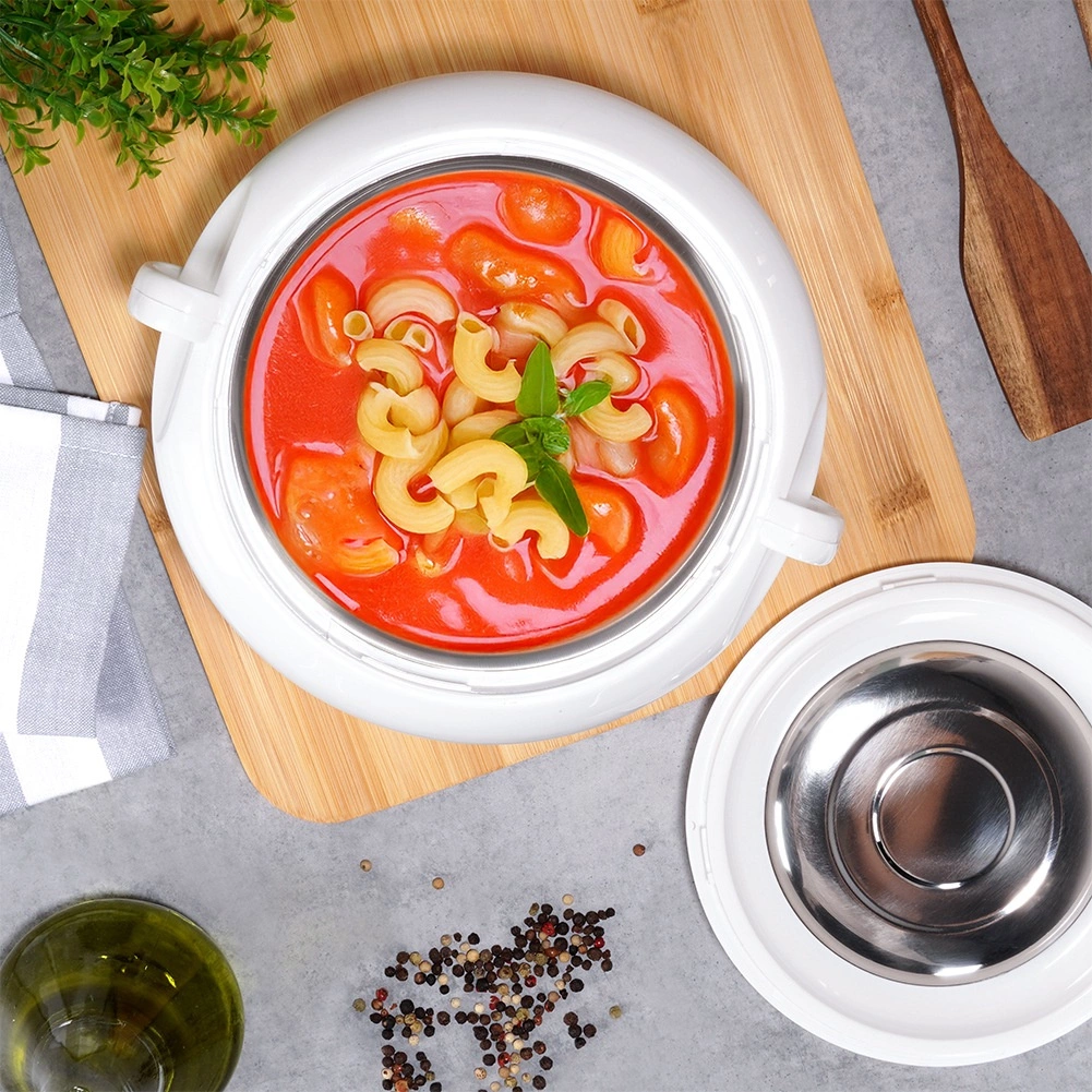 Păstrați temperatura mâncării fără încălzire complicată. Acest bol de servire izolat este excelent pentru prânzuri în familie, grătare și petreceri în grădină. Partea interioară din inox ajută la menținerea căldurii până la 2 ore, iar vara protejează înghețata sau deserturile reci de topirea rapidă. Capac elegant cu decor și design alb curat, potrivit pentru orice bucătărie.