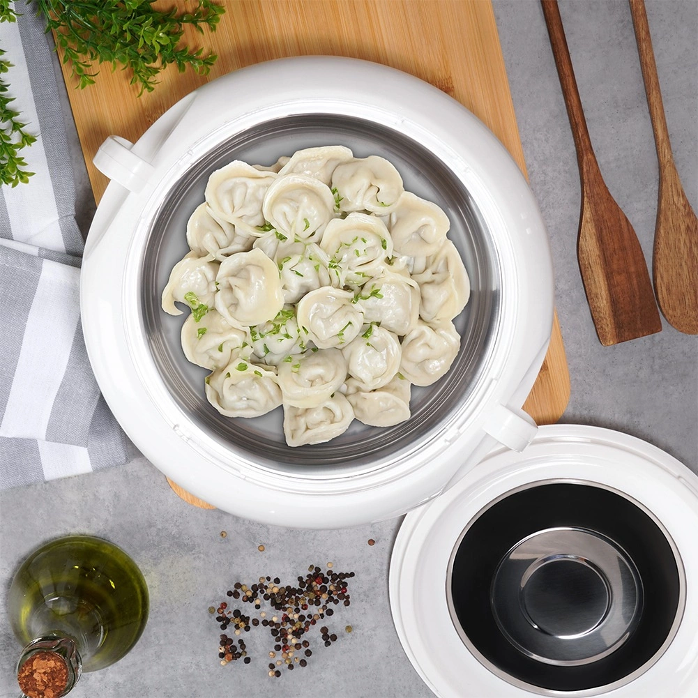 Construcția cu insert din inox și strat izolator ajută la menținerea mâncării calde până la 2 ore sau mai mult rece la servire.