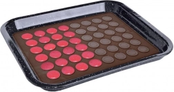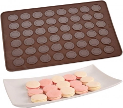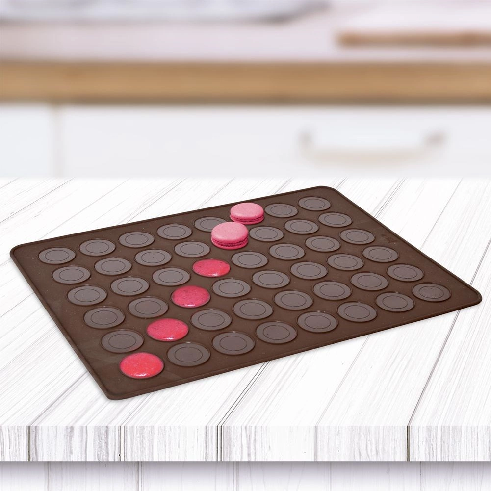 Ușurează-ți coacerea de macarons perfect uniforme. Acest covoraș din silicon are cercuri marcate în două diametre, astfel încât vei turna aluatul ușor pentru coji egale și uniforme. Datorită suprafeței antiaderente, piesele coapte se eliberează ușor fără nevoie de unt sau făină.