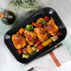 Volumul de 4,8 l și adâncimea practică păstrează sucurile în interiorul preparatului – ideală pentru fripturi și preparate gratinate suculente.