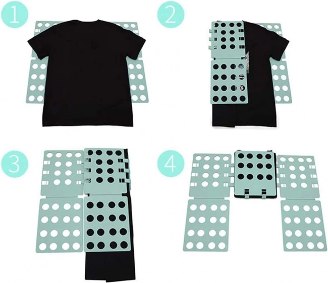 - Împăturire fulger – tricoul sau cămașa se împăturesc în câteva secunde.