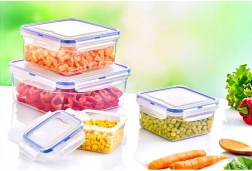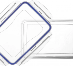 Cutie practică și rezistentă pentru alimente, cu volum de 2,6 l, capac etanș și grilă detașabilă, păstrează mâncarea proaspătă mai mult timp. Datorită celor patru cleme și garniturii din silicon este etanșă la aer și impermeabilă, iar pereții transparenți oferă vizibilitate instantanee asupra conținutului. Potrivită pentru mașina de spălat vase, cuptorul cu microunde (fără capac), frigider și congelator.