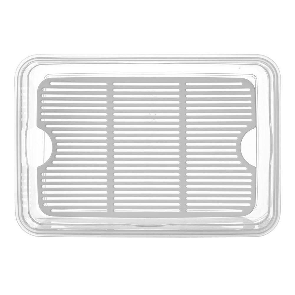 Păstrați alimentele proaspete mai mult timp cu cutia versatilă de 2,6 l. Garnitura din silicon și cele patru cleme asigură o închidere sigură, fără scurgeri, în timp ce grila detașabilă permite circulația aerului și separă alimentele de umiditatea de pe fund.
