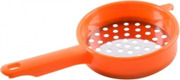 Mânerul lung asigură o prindere confortabilă, iar urechea de sprijin mai mică permite așezarea sigură pe bol sau oală. Ochetul practic de la capătul mânerului servește pentru agățare pe bara de bucătărie. Produsul este livrat în culori aleatorii (alb, galben, portocaliu). În plus, se curăță ușor – este potrivit pentru mașina de spălat vase.