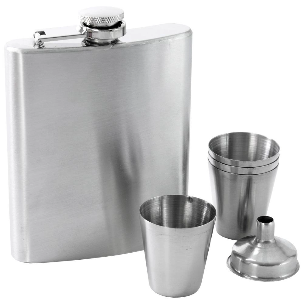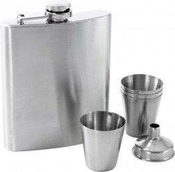 Setul stilat și practic, cu ploscă și accesorii, încântă pe oricine apreciază execuția de calitate și designul atemporal. Oțelul inoxidabil asigură durabilitate îndelungată, întreținere ușoară și păstrarea aromei băuturii preferate. Datorită pâlniei, umplerea ploscii este rapidă și curată, iar păhărelele sunt perfecte pentru servire comodă oriunde.