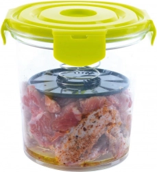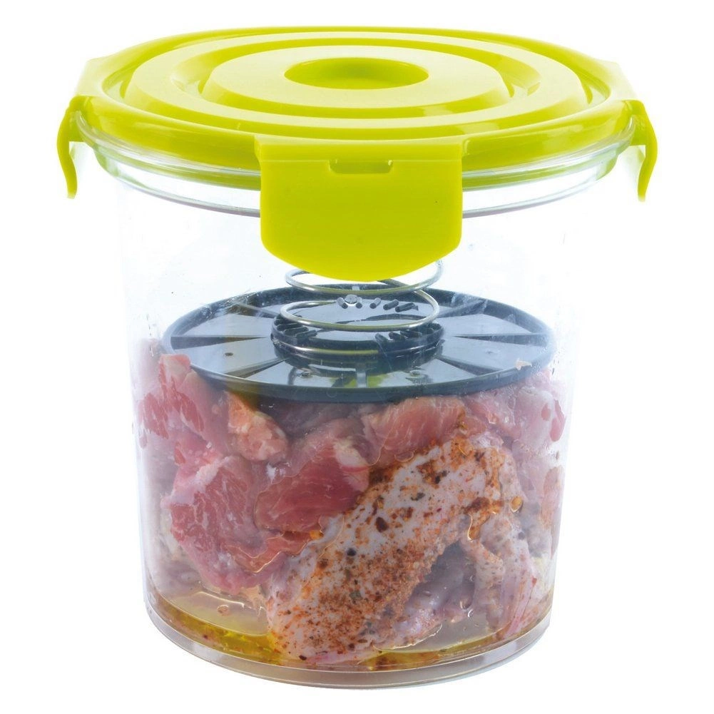 Recipientul solid și transparent permite controlul permanent al conținutului, iar placa cu arc menține ingredientele presate uniform sub nivelul lichidului. Acest lucru îmbunătățește pătrunderea condimentelor, reduce necesarul de ulei sau saramură și ajută la obținerea unui gust intens.