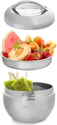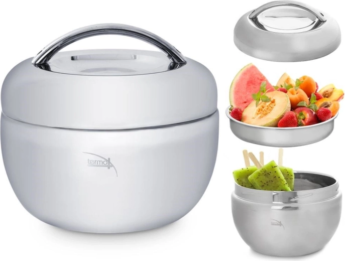 Practicul bol termic pentru mâncare din oțel inoxidabil de înaltă calitate, cu volum de 1 litru, îți menține preparatele calde până la 2 ore sau, dimpotrivă, mai mult timp reci. Este format din trei piese – bolul exterior, bolul/farfuria interioară și capacul cu mâner confortabil. Ideal pentru serviciu, călătorii și acasă.