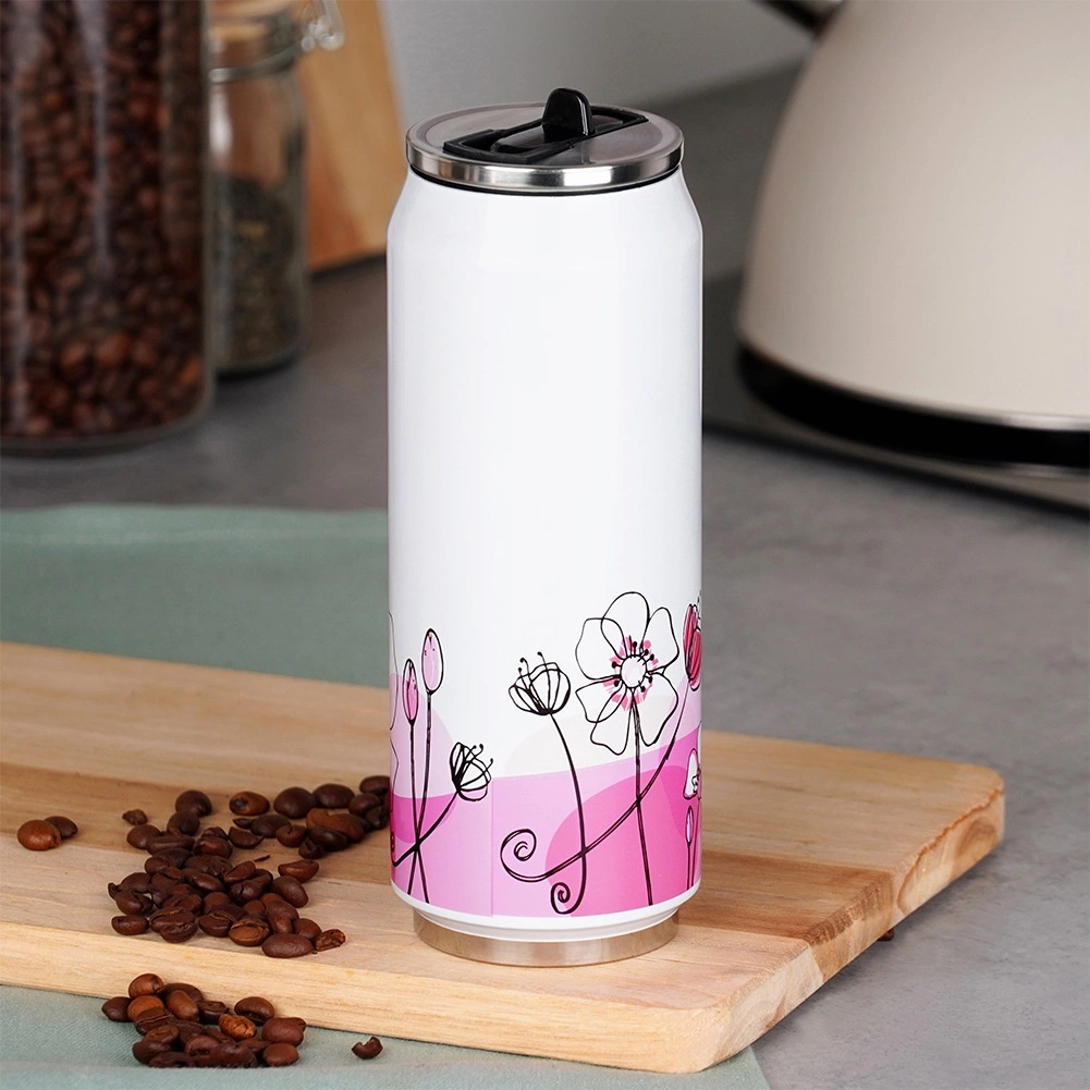 Descoperă termosul modern și practic în formă de doză, care îmbină designul alb elegant cu motiv floral roz și funcționalitate de top. Pereții dubli cu izolație vidată mențin temperatura ideală a băuturii timp îndelungat, în timp ce oțelul inoxidabil asigură durată de viață lungă și rezistență la utilizarea zilnică.