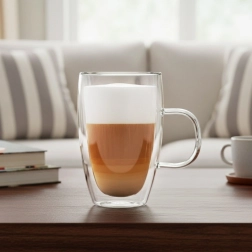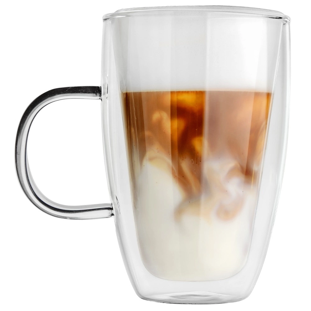 Volumul de 430 ml și forma înaltă evidențiază straturile de latte sau cappuccino. Paharul arată excelent acasă și la birou.
