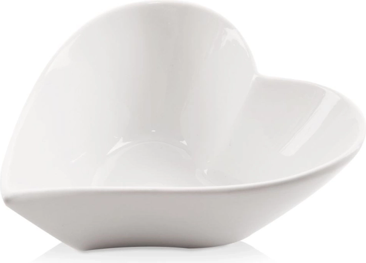 Acest bol stilat în formă de inimă aduce mesei tale rafinament și eleganță. Dimensiunea perfectă de 13 × 11 cm și volumul de 180 ml îl fac un ajutor practic pentru servirea zilnică a nucilor, fructelor uscate, măslinelor, deserturilor sau a micilor delicii. Culoarea albă neutră din porțelan evidențiază frumos preparatele servite și se combină ușor cu restul veselei.
