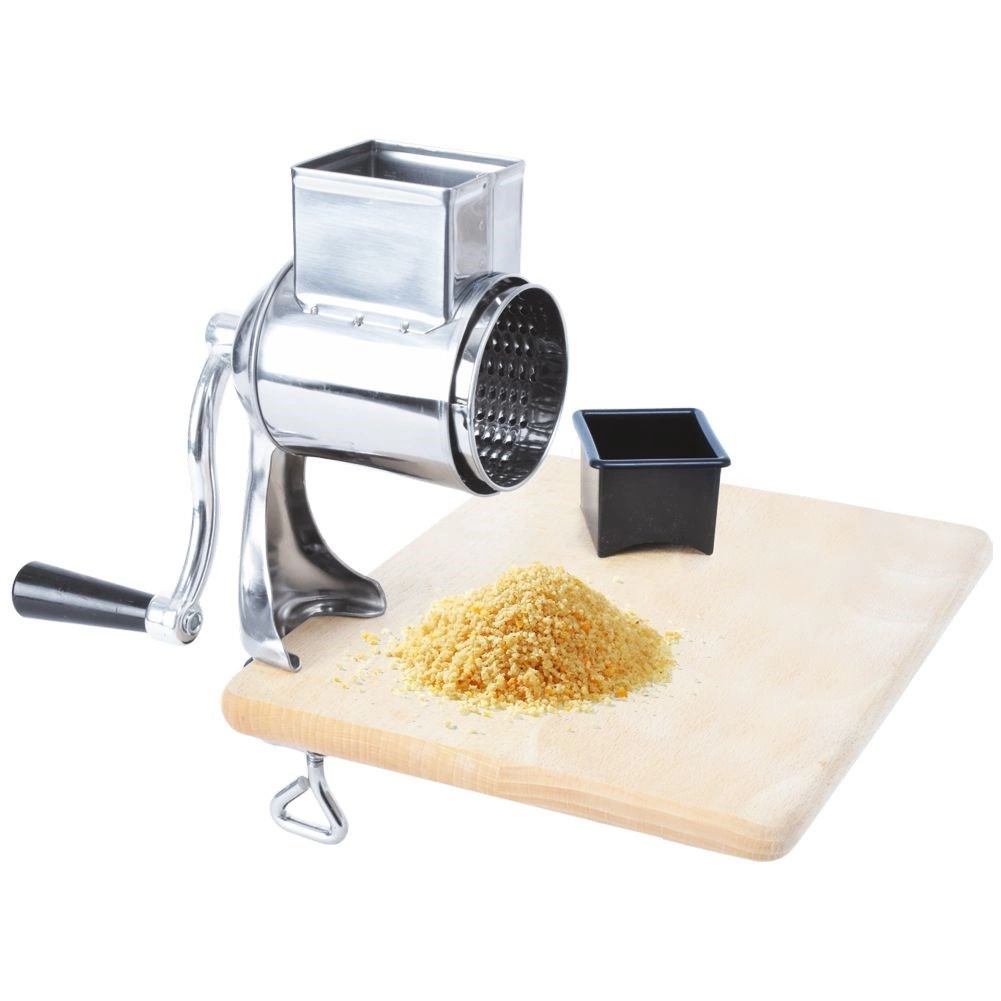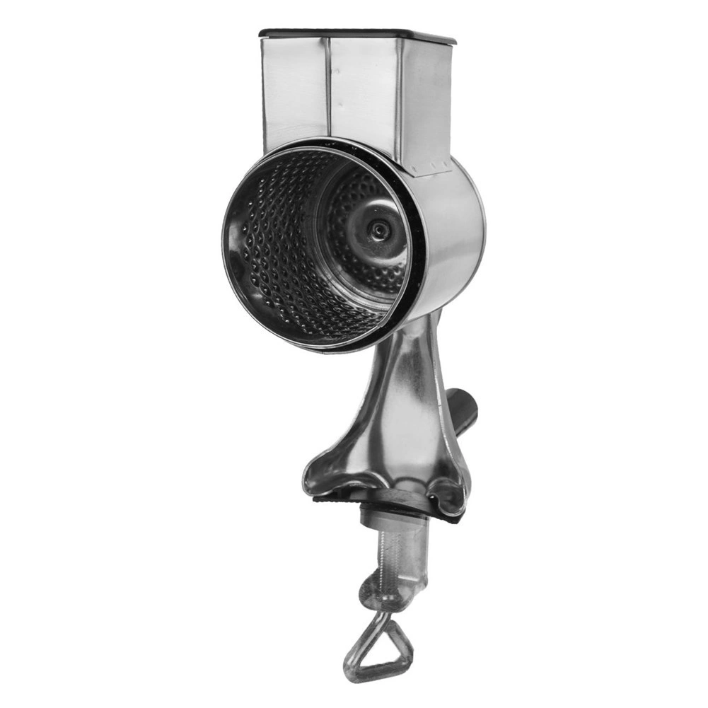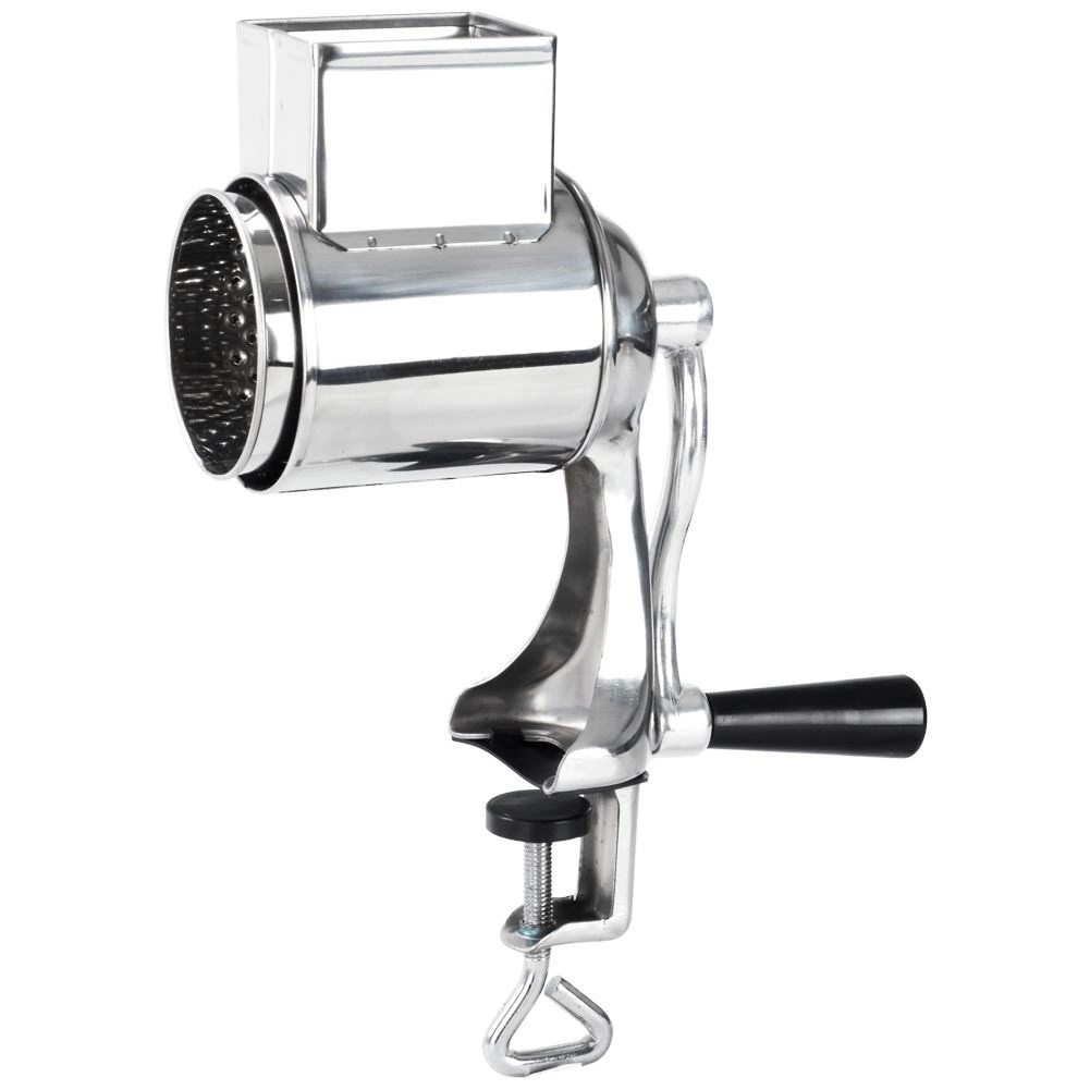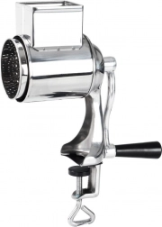 Răzătoarea manuală rotativă, cu clemă cu șurub pentru fixarea pe blat (grosime maximă aprox. 3,5 cm), oferă o stabilitate excelentă în timpul utilizării. Corpul din oțel inoxidabil combinat cu plastic durabil și manivela confortabilă permit răzuirea lină fără forță mare. Rezervorul cu dimensiuni de aprox. 6 × 5 cm găzduiește ușor ingredientele pentru dozare continuă.