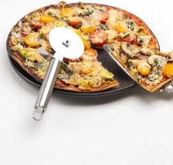 Descoperiți roata fiabilă pentru pizza din oțel inoxidabil, cu care veți tăia pizza și turtele în felii perfect drepte în doar câteva secunde. Construcția robustă, complet metalică, garantează durabilitate și o viață lungă de utilizare, în timp ce mânerul ergonomic cu apărătoare pentru degete oferă o priză sigură și confortabilă.
