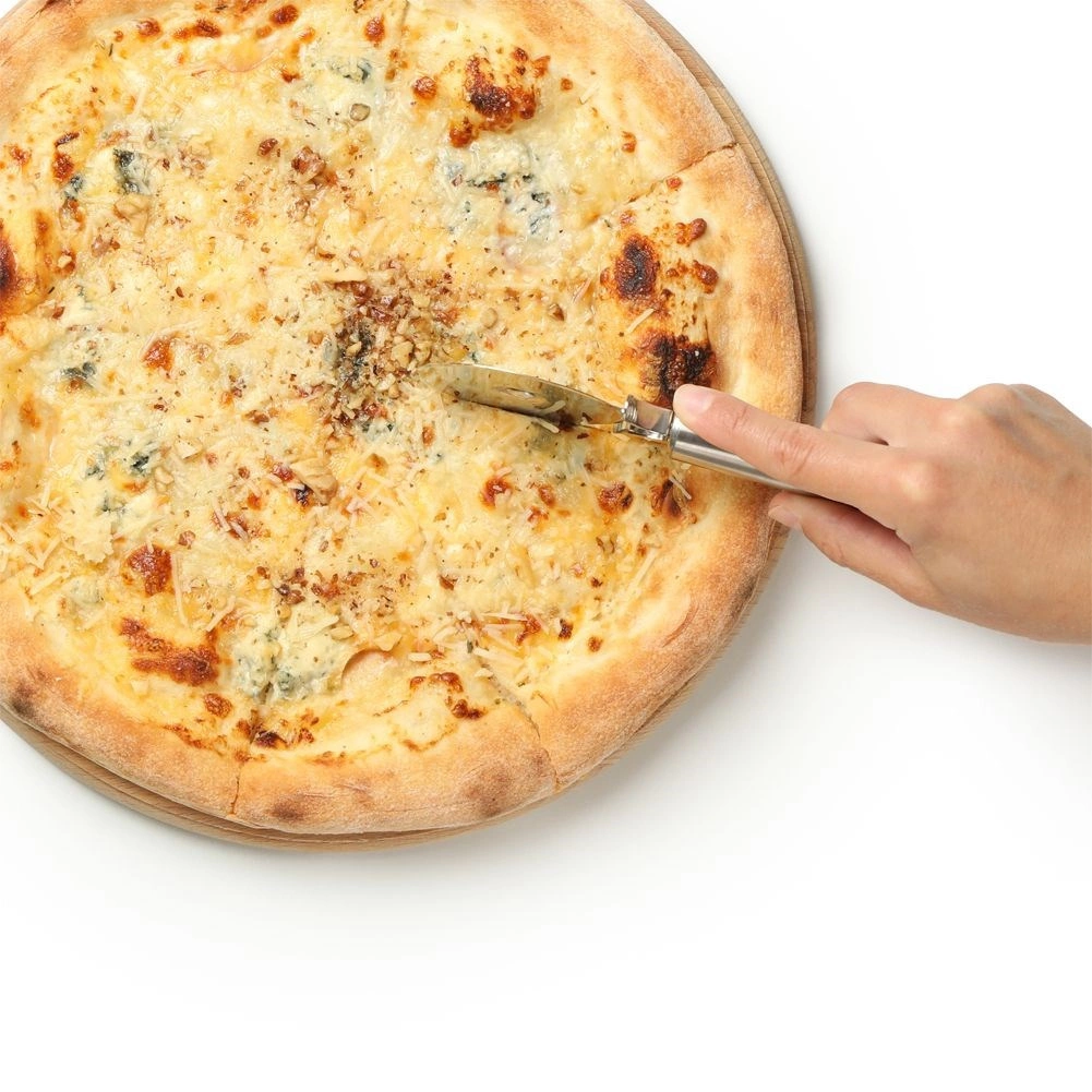 Împărțiți cu ușurință pizza proaspăt coaptă în felii egale direct pe tocătorul de servire.