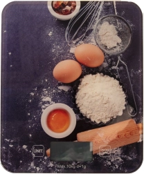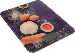 Cântar de bucătărie practic și stilat pentru cântărirea precisă a ingredientelor. Datorită afișajului LCD ușor de citit, verificați fără efort greutatea fructelor, legumelor, ingredientelor solide și lichide. Construcția plată din sticlă securizată cu motiv decorativ se întreține ușor și economisește spațiu în sertar sau dulap.