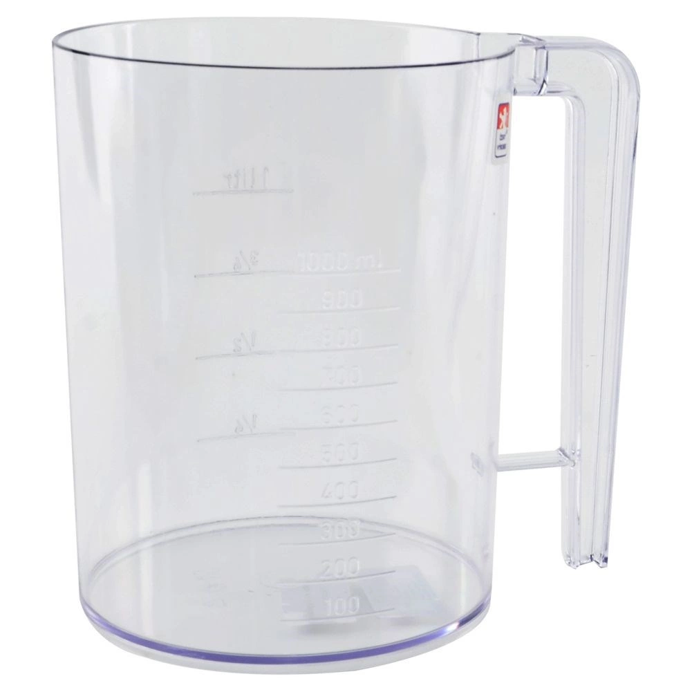 - Scală în ml (100–1000 ml) și în litri (1/4, 1/2, 3/4, 1 l)