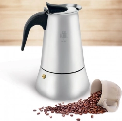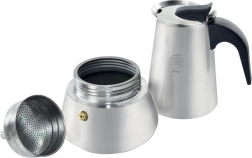 Această cafetieră moka din oțel inoxidabil de înaltă calitate aduce aroma și parfumul autentic al espresso-ului italian în bucătăria ta. Corpul robust din oțel inoxidabil garantează durabilitate îndelungată și distribuție uniformă a căldurii, în timp ce mânerul ergonomic din bachelită asigură priză sigură și confortabilă.