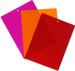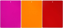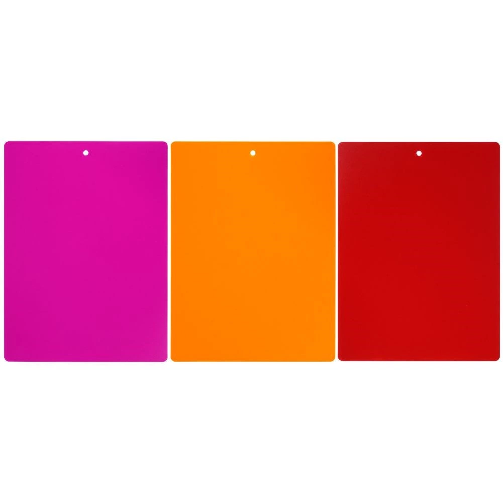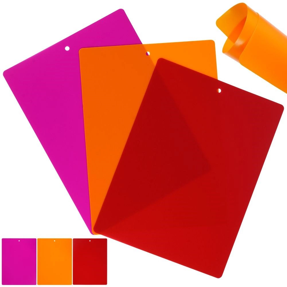 Cu acest set de trei tăvițe de tăiat diferențiate cromatic obțineți ajutoare de bucătărie ușoare, compacte și extrem de practice. Grosimea de doar 0,6 mm asigură o îndoire facilă, permițând transferul comod al ingredientelor tăiate direct în oală sau bol, fără mizerie.