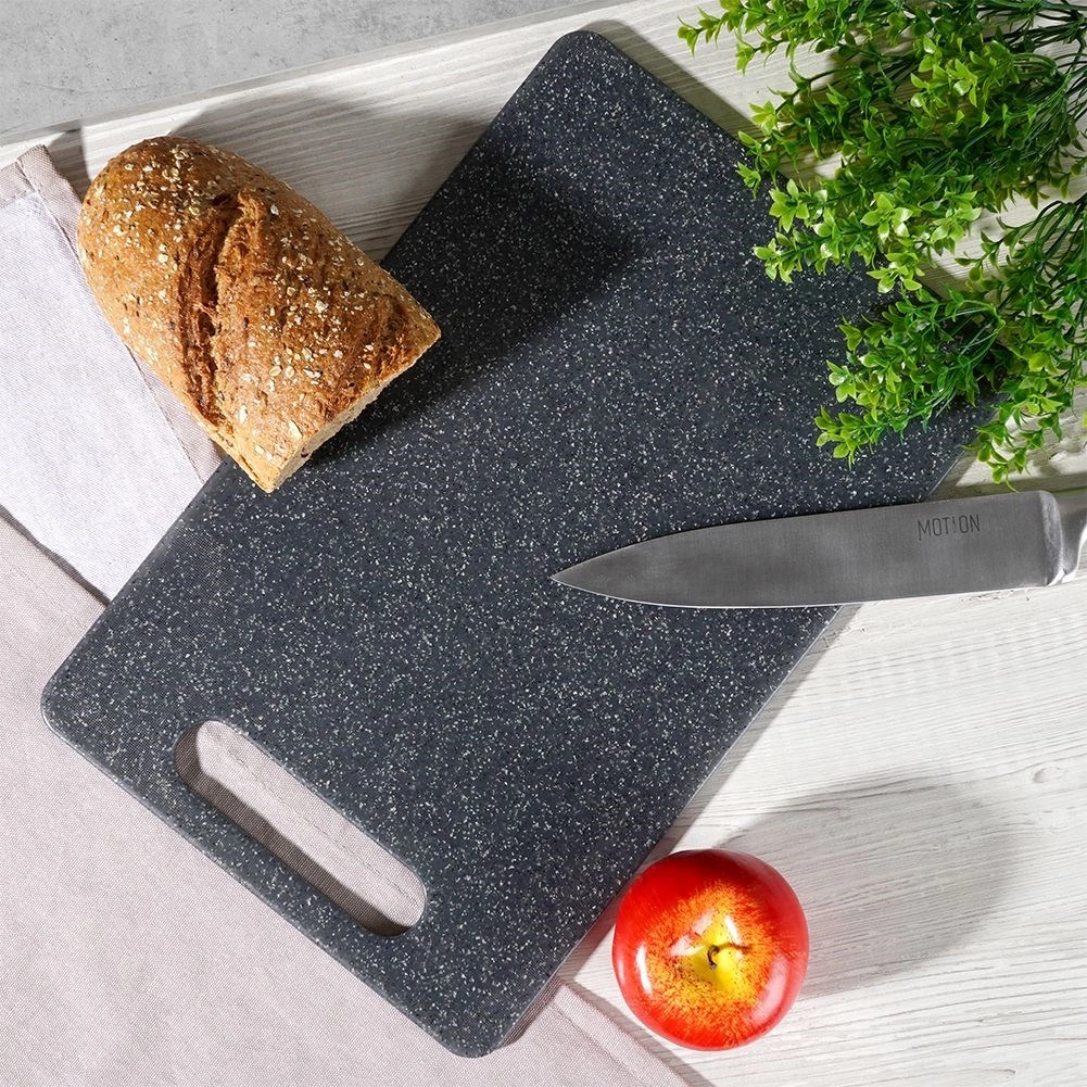 Tocător universal, în elegantă culoare gri ce imită granitul, devine un ajutor de încredere în orice bucătărie. Datorită plasticului de calitate este ușor, durabil și ușor de curățat, oferind totodată o suprafață stabilă pentru tăierea pâinii, legumelor și cărnii.