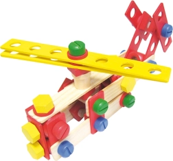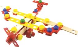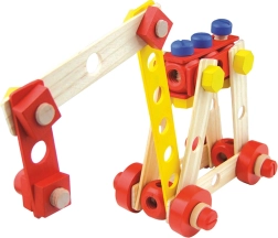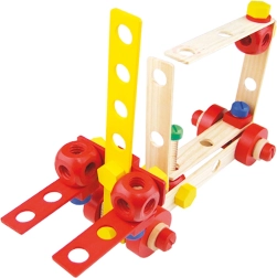Lemn masiv, componente rezistente și îmbinare sigură cu șuruburi și piulițe – ideal pentru micii constructori de la 3 ani.