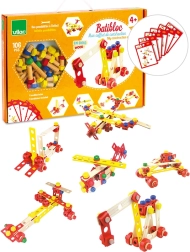 Acest set de construcție din lemn VILAC Batibloc, de înaltă calitate, este ideal ca prim set de construcție pentru copiii de la 3 ani. Datorită pieselor colorate și naturale cu orificii și elementelor de conectare, copiii pot construi vehicule, avioane și modele originale proprii, dezvoltându-și răbdarea și îndemânarea.