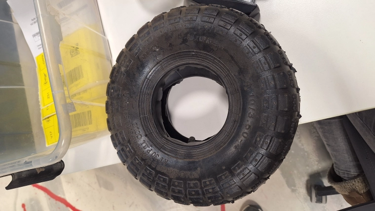 Anvelopă cu cameră rezistentă pentru cărucioarele Sunwaal GC1 și GC2, oferă rulare fiabilă și capacitate mare de încărcare. Datorită diametrului roții de 25 cm, lățimii de 7 cm și capacității de până la 136 kg per anvelopă, este ideală pentru utilizare solicitantă. Fără jantă – destinată ca anvelopă de schimb cu cameră.