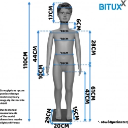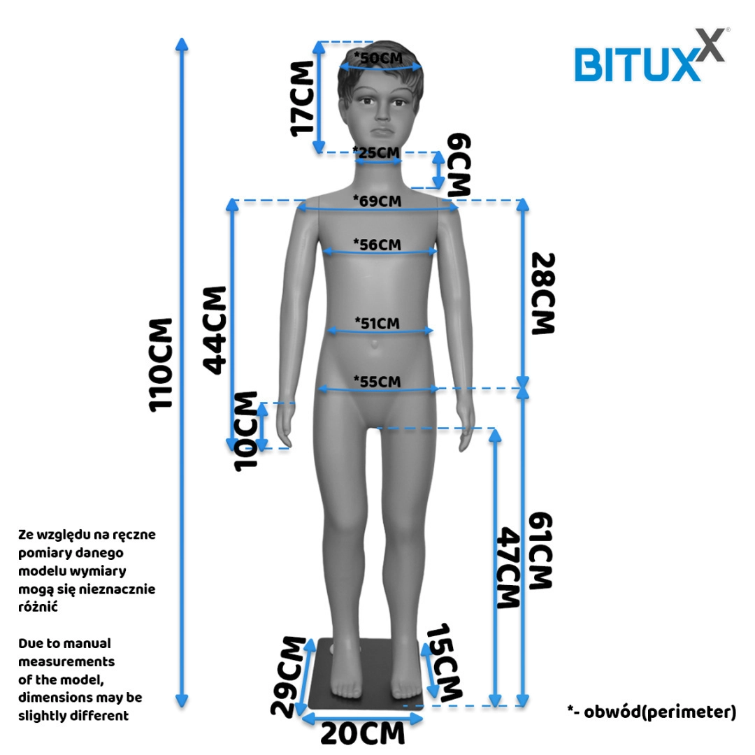 Această manchină pentru copii, cu înălțimea de aproximativ 110 cm, se remarcă prin aspectul natural – fața, părul și mâinile modelate în detaliu atrag atenția și sporesc atractivitatea expunerii. Materialul din polietilenă durabilă este ușor, solid și ușor de curățat, fiind excelent pentru utilizarea zilnică în retail.
