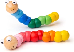 Acest viermișor colorat este prima jucărie motrică ideală pentru mânuțe mici. Datorită segmentelor din lemn netede și conexiunii sigure, copiii îl prind, îl rotesc și îl îndoaie cu ușurință – exersând astfel priza, coordonarea mână–ochi și concentrarea. Culorile vesele atrag atenția și stimulează jocul curios.