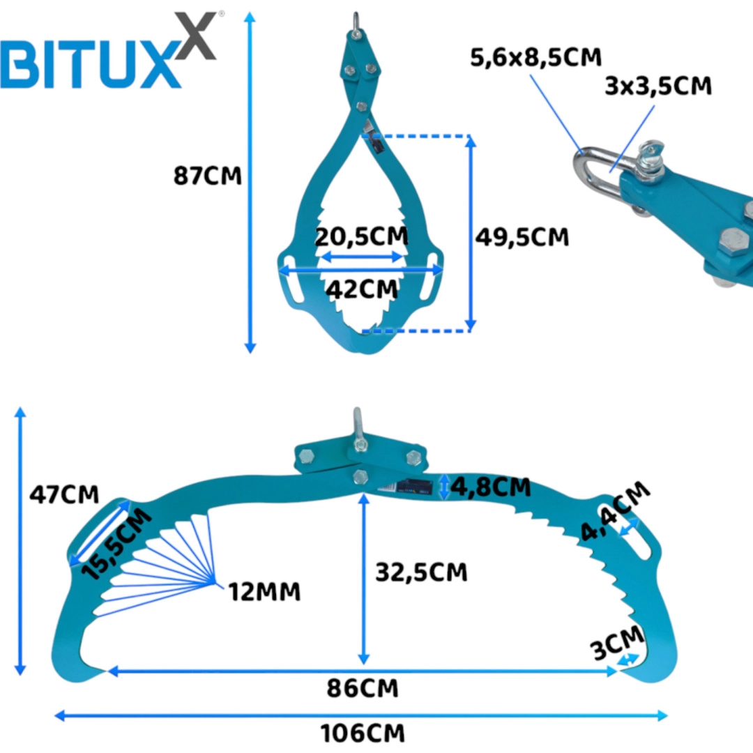 Căutați un instrument de încredere pentru manipularea buștenilor grei? Cleștele BITUXX combină capacitate mare, deschidere largă și mușcătură sigură a dinților, astfel încât ridicați, deplasați și depuneți lemnul rapid și în siguranță. Ideal pentru încărcare, descărcare și tractarea buștenilor în condiții solicitante.